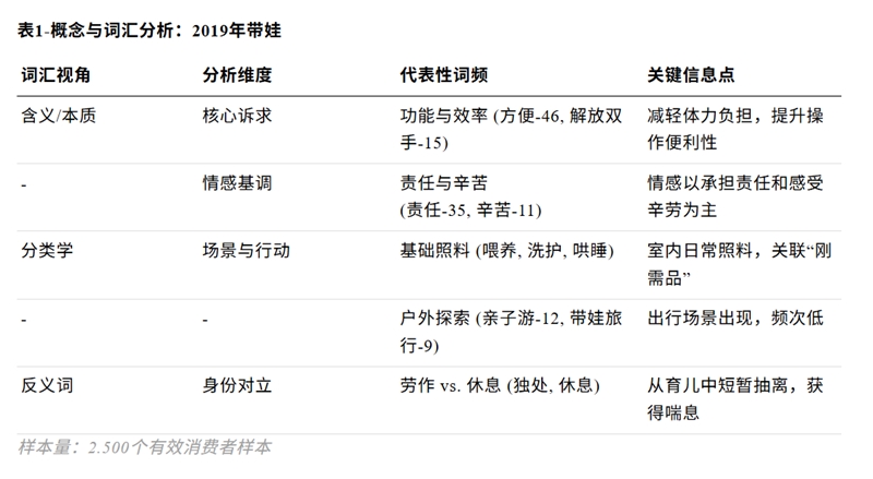 回到2019年,媽媽們就像是地球上最敬業(yè)的項目經(jīng)理,她們的目標(biāo)清晰而實際:管理好“帶娃”這個項目。詞典里的高頻詞是方便(46次)和解放雙手(15次),每一次消費,都是為了優(yōu)化流程,讓這個伴隨著辛苦(11次)和責(zé)任(35次)的項目能運轉(zhuǎn)得更順暢一些。