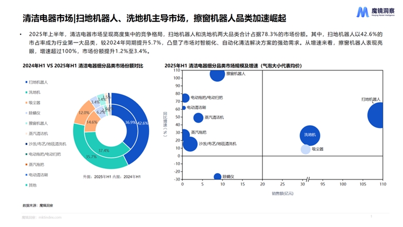 2025年上半年,清潔電器市場呈現(xiàn)高度集中的競爭格局,掃地機(jī)器人和洗地機(jī)兩大品類合計占據(jù)78.3%的市場份額。