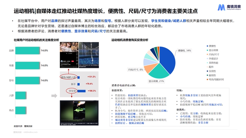 根據(jù)消費者的評論,消費者對便攜性、顯示效果和尺碼/尺寸的關(guān)注度最高。