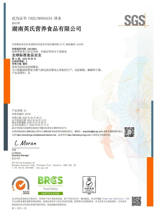 自2008年創(chuàng)立以來(lái),17年間英氏穩(wěn)步成長(zhǎng)為中國(guó)嬰幼兒輔食領(lǐng)軍品牌,更實(shí)現(xiàn)“中國(guó)嬰幼兒輔食”連續(xù)三年銷(xiāo)量第一的佳績(jī)。2024年,英氏瀏陽(yáng)工廠建成投產(chǎn)后,團(tuán)隊(duì)迅速轉(zhuǎn)化多年經(jīng)驗(yàn),投產(chǎn)不足一年首次申報(bào)即斬獲有 “食品安全界奧林匹克” 之稱(chēng)的BRCGS A級(jí)、IFS高級(jí)雙認(rèn)證。